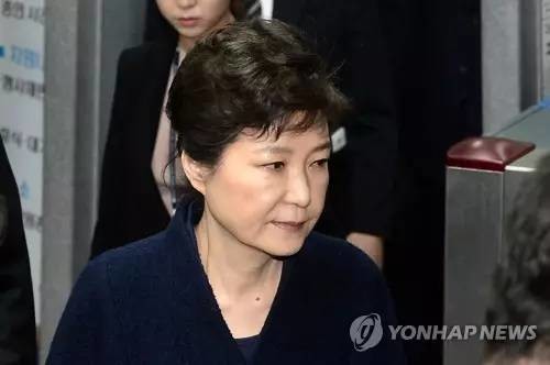 3月30日,朴槿惠在逮捕必要性审查结束后走出首尔中央地方法院。来源:韩联社