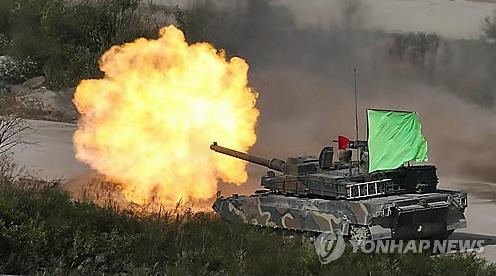 资料图片:2015综合火力剿敌演习现场。(图片来源:韩联社)