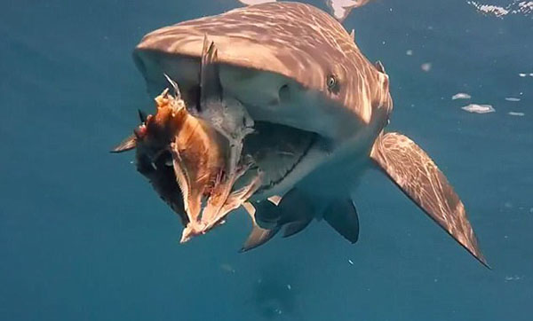 据悉,柠檬鲨一般成群出现,身长可达10英尺(约3米)。丝鲨的听力非常好,身长可达12英尺(约4米),重达800英镑(约363公斤)。