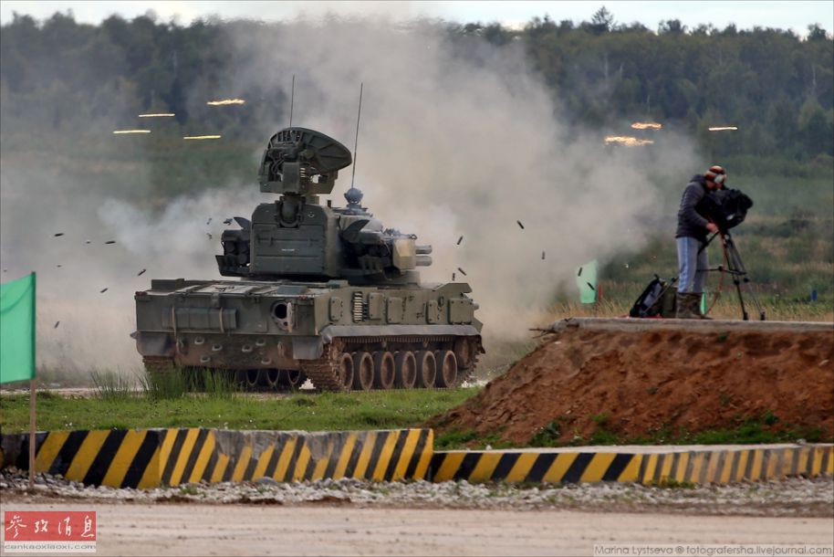 “通古斯卡”M1弹炮合一防空系统进行实弹射击表演。