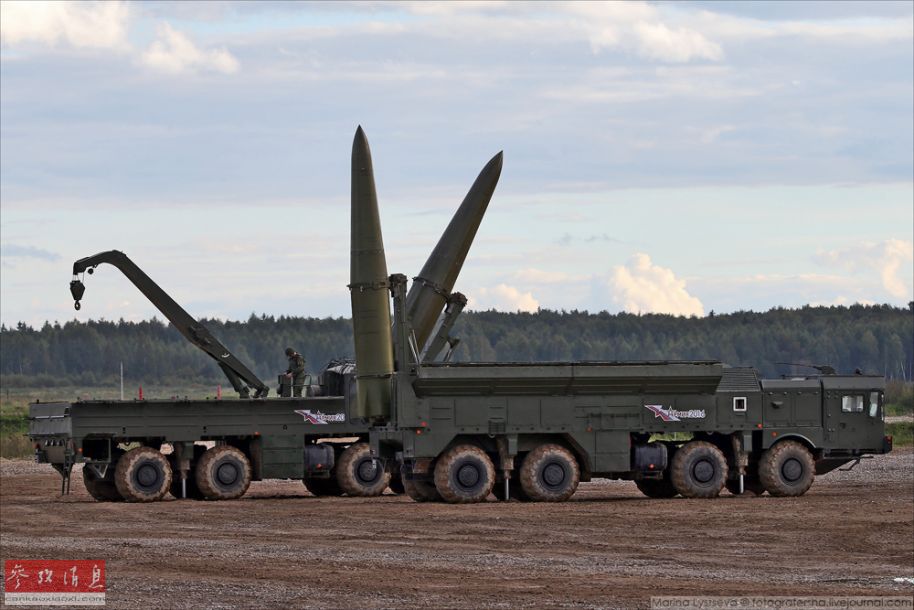 “伊斯坎德尔”战术导弹发射车展示野战条件下装填导弹。