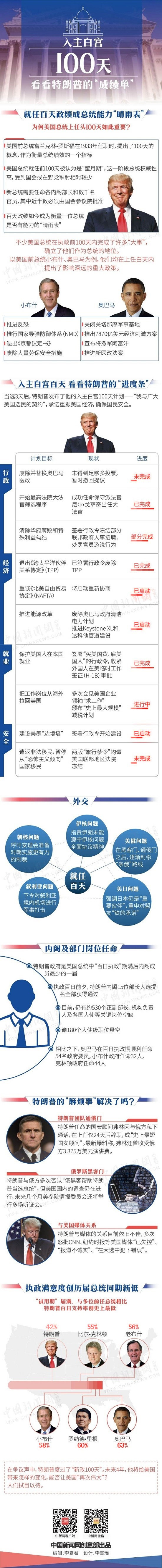 在刚刚过去的一周,饱受质疑的特朗普密集推进一系列争议法案,欲为“百日成绩单”增色。中新网为您一图解读特朗普就职百天的“成绩单”。