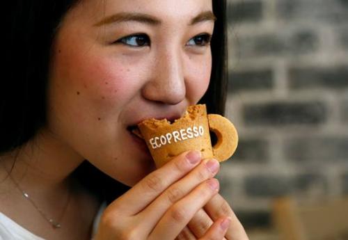 这家咖啡馆推出了配有猫咪拉花图案的“生态浓缩咖啡玛奇朵(Ecopresso Macchiato)”,猫咪的图案让整杯咖啡看起来卖相很好,最美妙地是,顾客在享用咖啡的同时,还可以连同杯子一起吃掉。