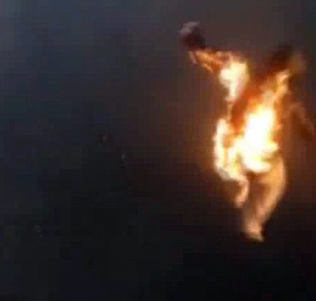 网上流传着这两名少年“自焚”的视频。视频中,一名男孩上身淋满可燃液体,朋友用打火机在他的外套上点火,火苗瞬间燃遍男孩的上身,他立刻跳入河中。另一个视频是从远处拍摄的,拍到两名少年一前一后跳入水中。