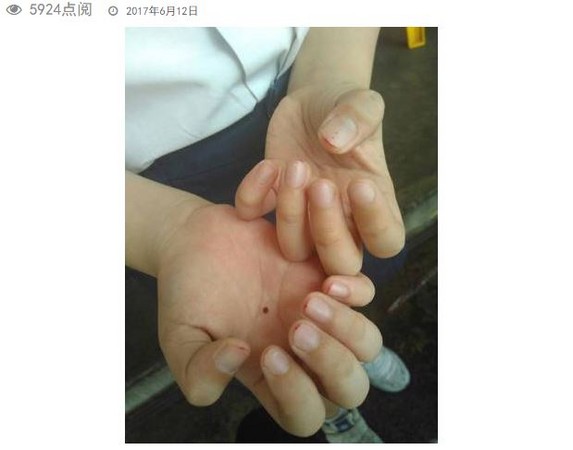 根据马来西亚《中国报》报道,一名就读沙令华小的男童因为忘记剪指甲遭处罚,没想到竟是老师“亲自操刀”帮忙,还将十指指甲剪到“入肉”,流血,导致他十根指头都沾上些许干掉的血渍。