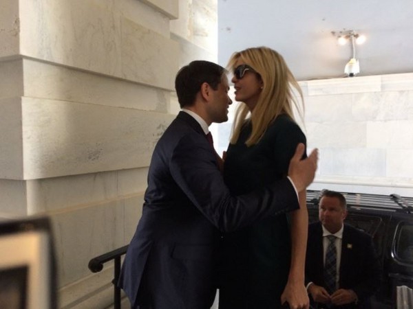 美国参议员卢比奥试图拥抱伊凡卡,被冷漠地拒绝。(图片来源:记者韦尔纳推特)