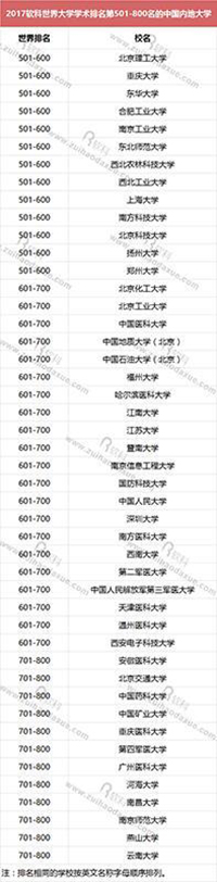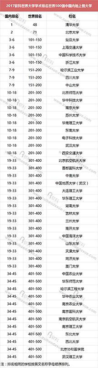 值得注意的是,四川大学进步明显,首次入围世界两百强;在200强之列的,还有哈尔滨工业大学和中山大学。而在201-300名的范围内,中国内地共有北京师范大学、华中科技大学、南京大学、苏州大学等9校在列,其中电子科技大学和武汉大学由2016年的301-400名,上升至世界第201-300名。