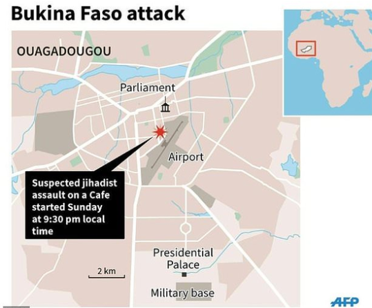 事件发生在周日(13日)晚间,据报有多名疑似圣战分子持枪驾车到一间土耳其餐馆,在门外向店内开火,随后布吉纳法索安全部队配备装甲车辆抵达现场,与恐怖份子互轰,枪战造成17人死亡,8人受伤(稍后死亡人数增至18人)。