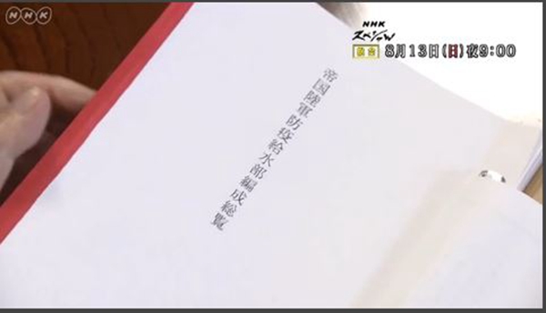 解说员:(这是)原“731部队”队员之一的须永鬼久太先生。他保管着一份宝贵的资料,是有关至今不为人知的医学者们参与(“731部队”人体实验)全貌的线索,“731部队”的战友会在战后整理的名册(《帝国陆军防疫给水部编成总览》)。