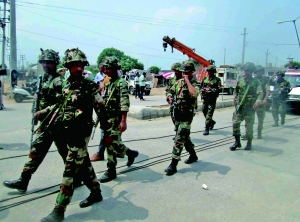 8月26日,印度军方在哈里亚纳邦锡尔萨地区巡逻警戒。 新华社发