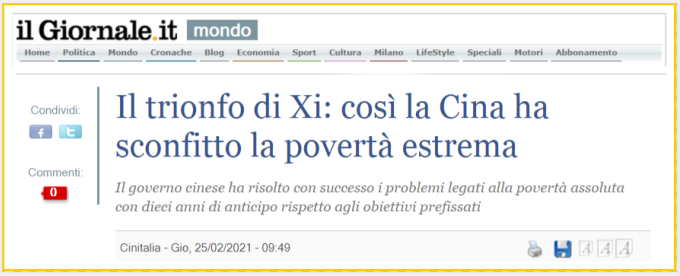 当地时间2月25日,意大利主流媒体《日报》网站也发表总台稿件《习近平庄严宣告:中国战胜了绝对贫困》。文章通过历史回顾和数据,分析阐述了中国脱贫攻坚取得的历史性成果。报道指出,乡村振兴将是中国的下一个发展目标和重大任务。中国将积极开展国际减贫合作,做世界减贫事业的有力推动者。(总台记者 张赫 魏帆 赵洪超 宋承杰)(编辑 代根华)