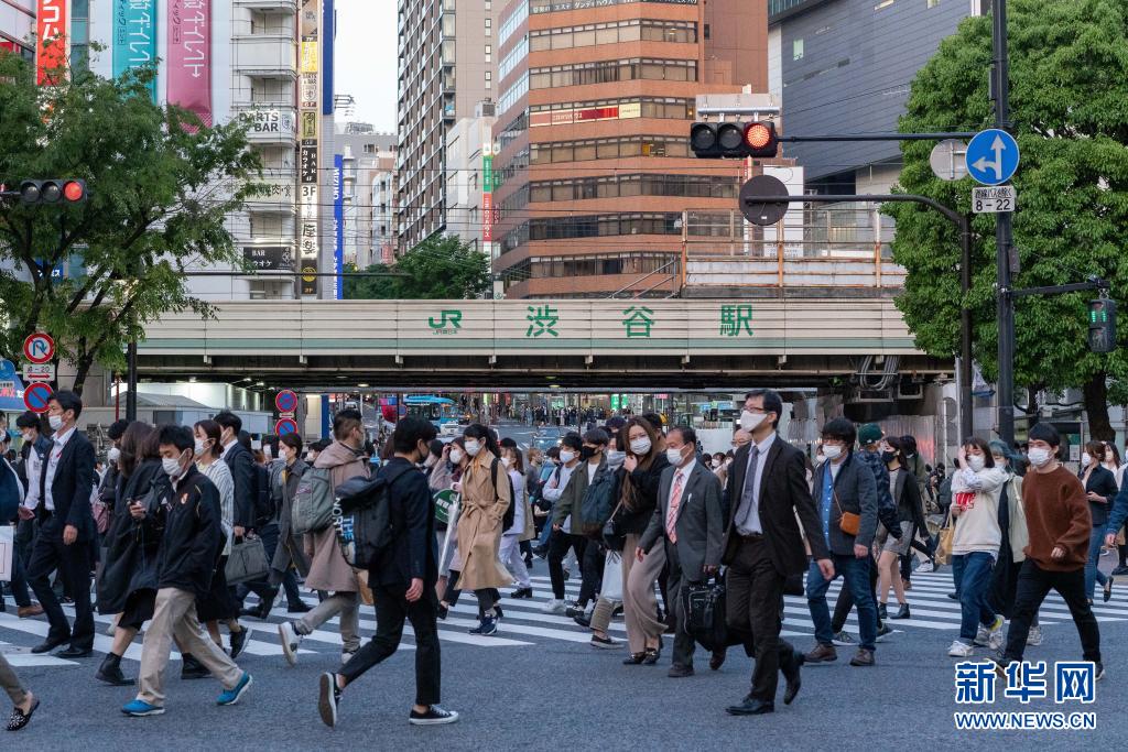 4月23日,人们佩戴口罩走在日本东京涩谷街头。新华社发(克里斯托弗·朱摄)
