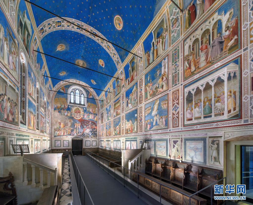 这是2017年12月15日在意大利帕多瓦拍摄的斯科洛文尼礼拜堂内部的湿壁画。新华社发
