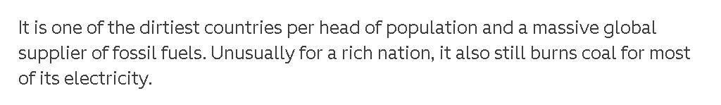 比如,澳大利亚一边说会自己正在致力于在2050年时实现“净零排放”,一边却又继续允许煤矿的运作,并通过燃煤来发电。