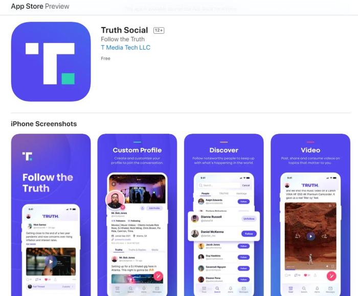 据介绍,“Truth Social”应用程序包括自定义个人资料、搜索工具、视频功能、短信等多项功能。