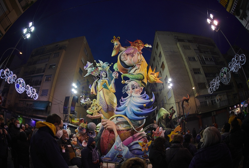 ↑3月19日,人们在西班牙巴伦西亚观看法雅玩偶。新华社发(帕布罗·莫拉诺摄)