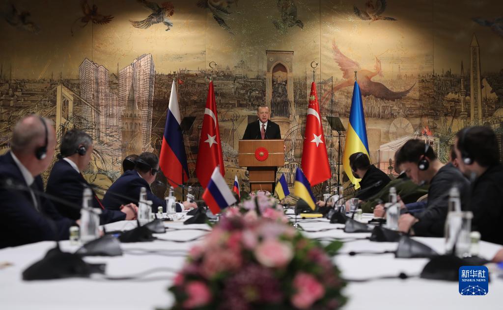 3月29日,俄罗斯和乌克兰谈判代表在土耳其伊斯坦布尔多尔玛巴赫切宫总统府开启新一轮谈判。土总统埃尔多安在和谈开始前会见了双方代表并表示愿促成俄乌总统在土会面。