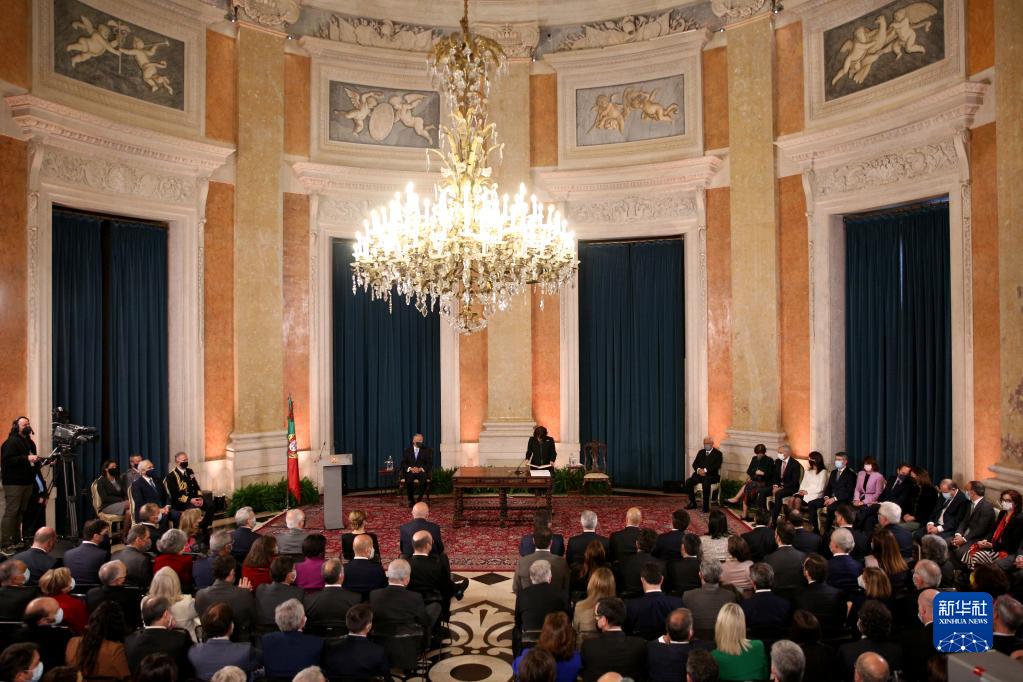 这是3月30日在葡萄牙首都里斯本阿茹达宫拍摄的新政府就职仪式现场。