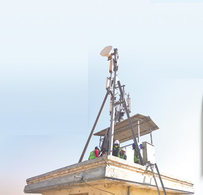 中国移动辛姆巴科公司工作人员在高温下开展4G基站建设。