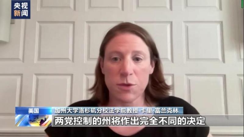 加州大学洛杉矶分校法学院教授 卡里·富兰克林:我们看到美国(支持民主党的)蓝州和(支持共和党的)红州之间分裂正在进一步加剧,两党控制的州将作出完全不同的决定。最高法院似乎只是在执行某一党派的政策,因此也失去了很多美国人的信任。