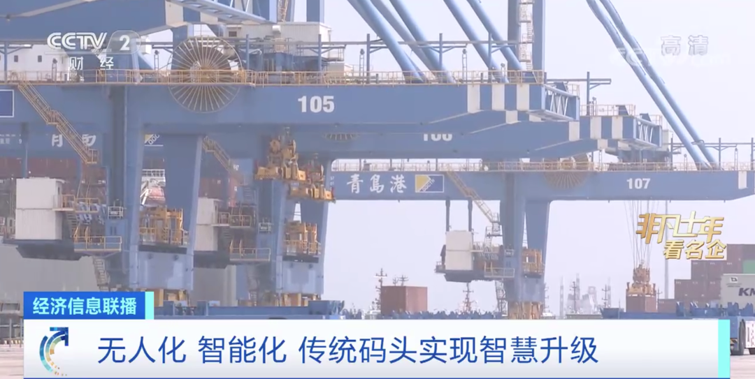 在山东省港口集团青岛港,蓝天碧海之间,码头和堆场生产作业行云流水,无人驾驶的集装箱卡车在其中穿梭有序。今年6月,这个自动化码头桥吊最高单机作业效率达到每小时67.76自然箱,第九次刷新自动化码头装卸效率世界纪录。而在十年前,操作员都必须登上近50米高的桥梁进行作业,装卸完全靠人工。