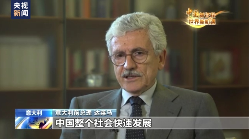 意大利前总理 达莱马:中国整个社会快速发展,摆脱了饥饿和绝对贫困,我认为这是非常重要的经验。发展中国家,尤其是面临饥饿和贫困挑战的国家都应该学习中国经验。重要的是,中国的快速发展并没有妨碍其他国家,而是为全球财富增长作出巨大贡献并推动了各国交流与合作。