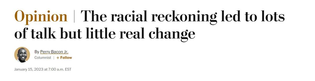 弗洛伊德案发生后的几周,全社会都开始关注黑人:一家大公司承诺为黑人事业花费数十亿美元;一个白人占绝大多数的城市举行了大规模抗议,谴责警察暴行;一位政治家发表演讲,承诺尽一切努力打击种族主义。