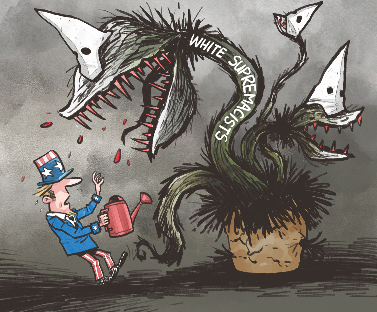 白人至上主义在美国愈演愈烈,是因为美国自身孕育而生。(来源:中国日报 蔡艨 英文《中国日报》2023年8月31日8版)