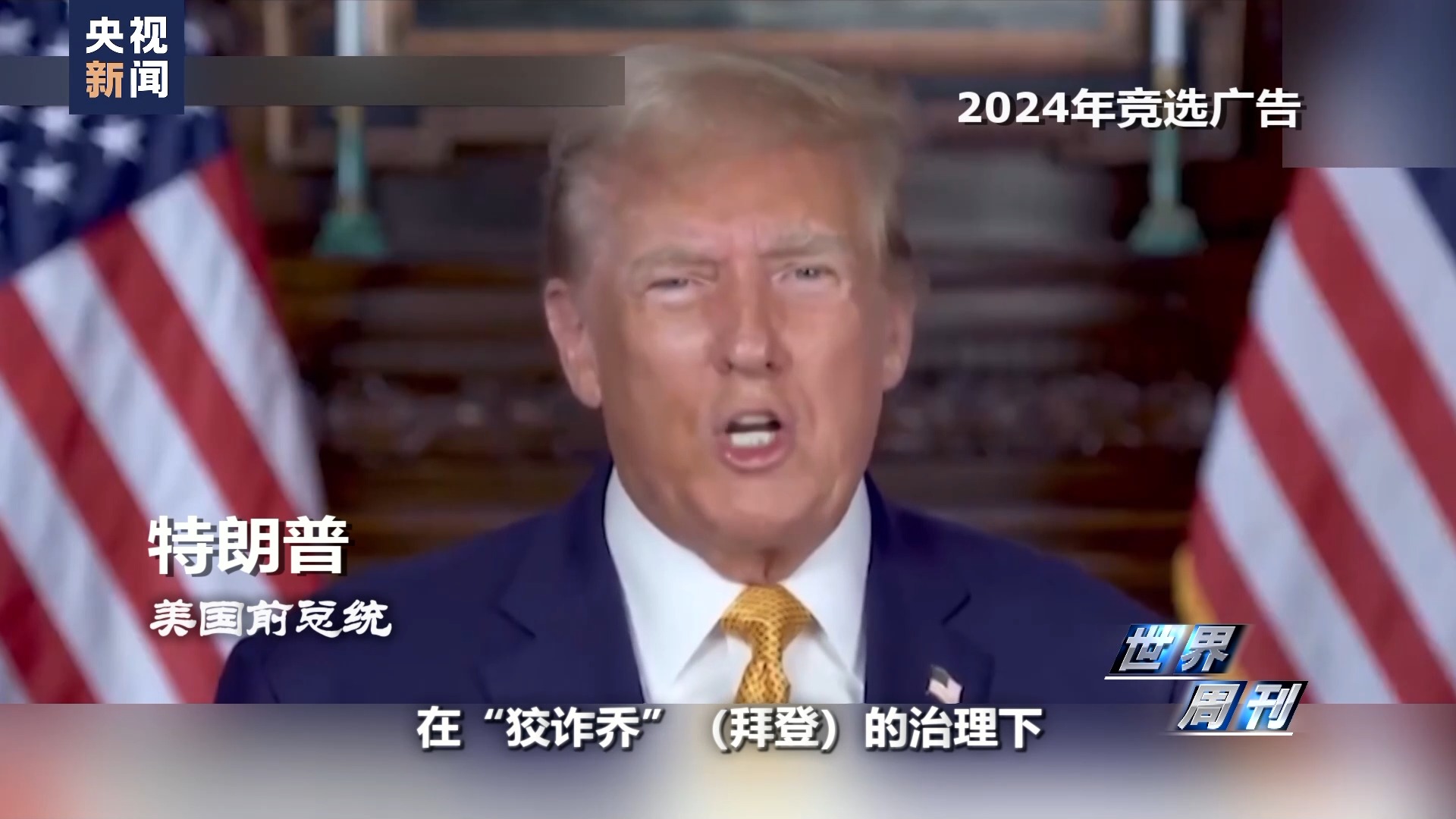美国前总统 特朗普 2024年竞选广告:在“狡诈乔”(拜登)的治理下,没有一样东西便宜。食品、汽油、汽车、卡车、租金和抵押贷款,价格都涨上了天,整个国家都因为这个家伙陷入地狱。