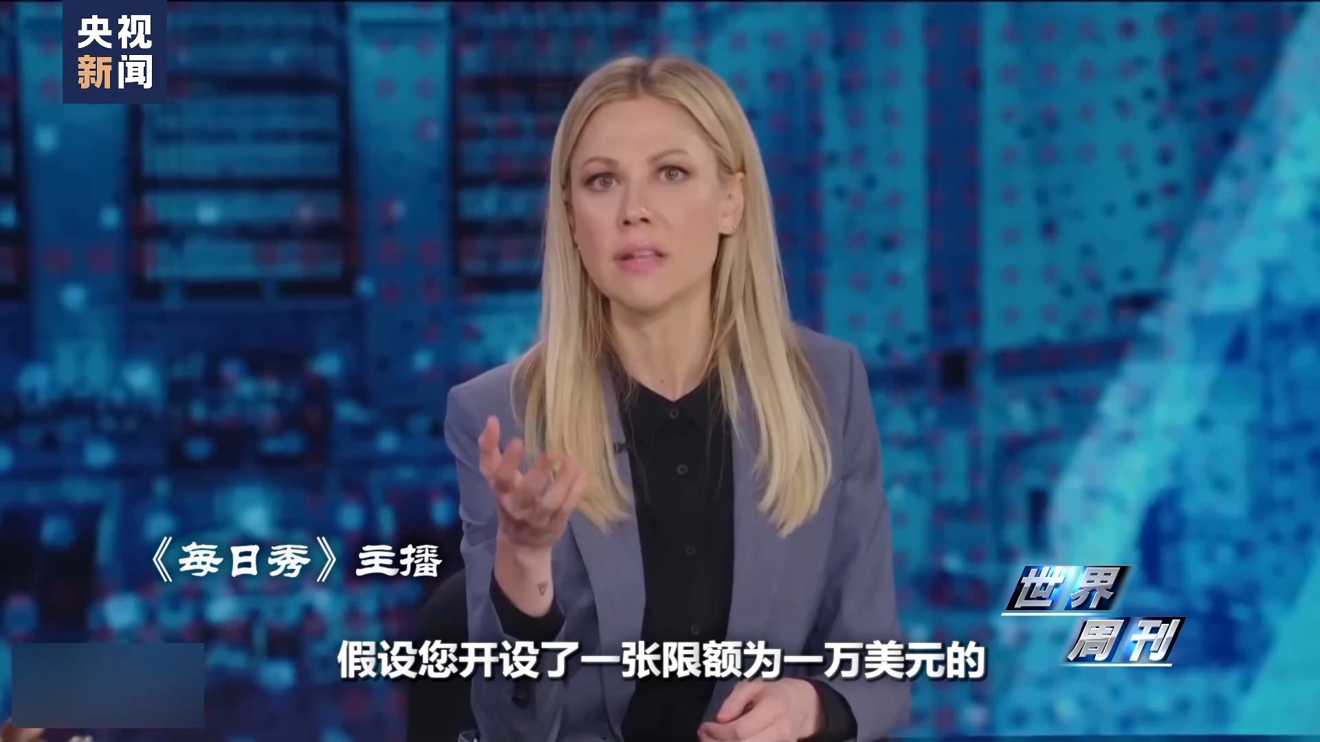 《每日秀》主播:假设您开设了一张限额为一万美元的摩根大通蓝宝石信用卡,你用它挥霍买了古驰包包还做了面部激光护理。然后你发现把事情搞砸了,因为你必须为孩子的新眼镜付钱,因为他愚蠢的老师说他在课堂上阅读有困难,当你无法换老师时,就必须让银行提高你的信用额度,否则你就会被丈夫发现。因为你向他保证过你不乱刷信用卡购物。这基本上就是美国如今所处的情况。
