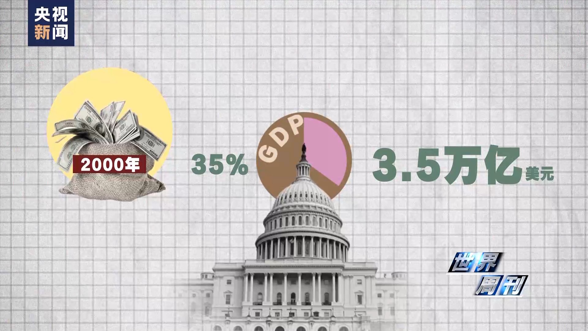 联合国秘书长前特别顾问、哥伦比亚大学经济学教授杰弗里·萨克斯在《美国的战争和美国的债务危机》一文中指出:2000年,美国联邦政府债务为3.5万亿美元,相当于当年国内生产总值(GDP)的35%。