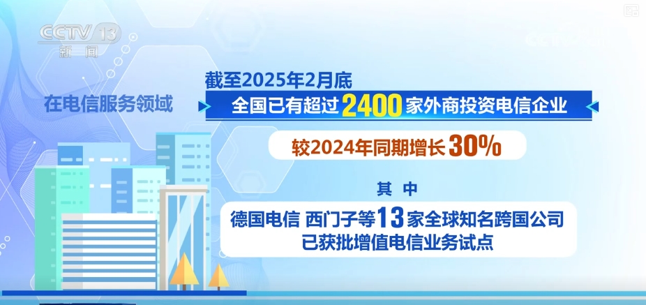 据统计,在电信服务领域,截至2025年2月底,全国已有超过2400家外商投资电信企业,较2024年同期增长30%。其中,德国电信、西门子等13家全球知名跨国公司已获批增值电信业务试点。