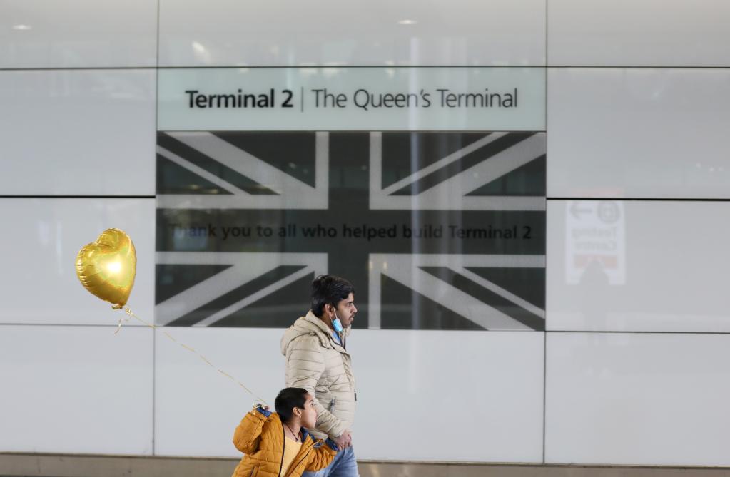 3月18日,旅客走在英国伦敦希思罗机场内。新华社记者李颖摄