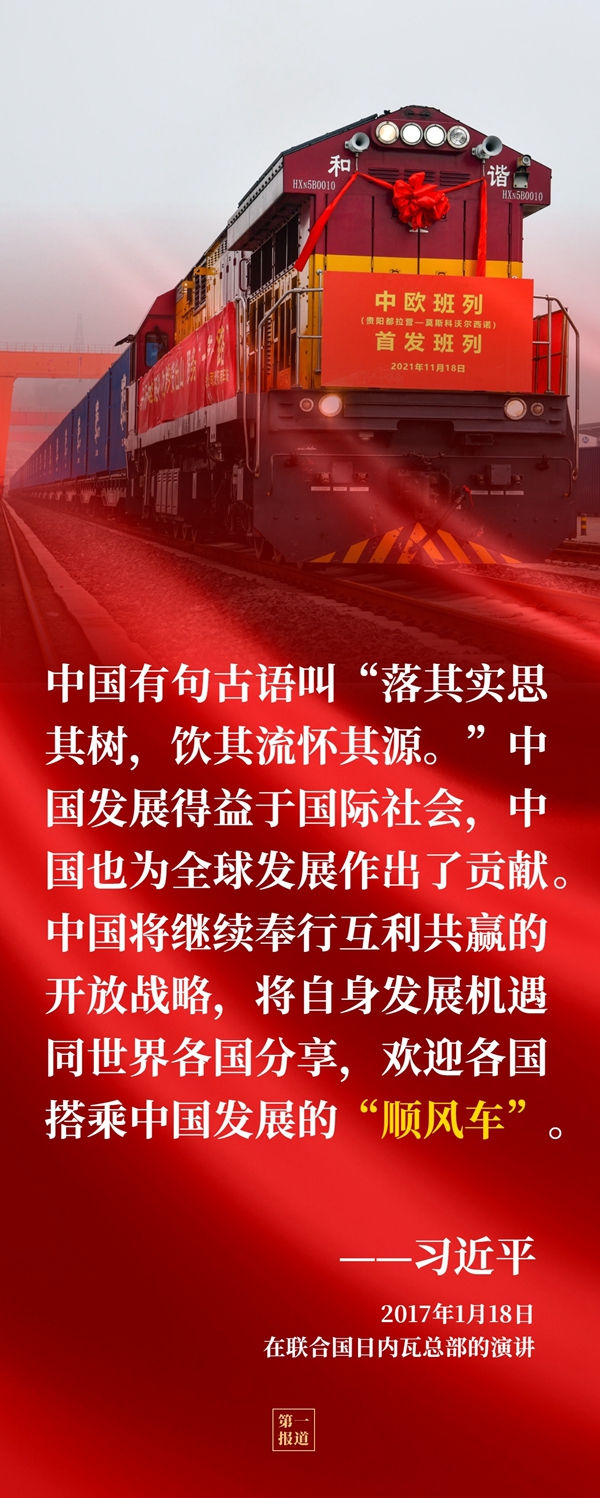 “在人类追求幸福的道路上,一个国家、一个民族都不能少。”从践行互利共赢的开放战略,到推动高质量共建“一带一路”,从深化国际减贫合作,到提出全球发展倡议,中国始终把自身命运与世界各国人民命运紧密相连,与世界共谋发展、并肩同行,向着构建人类命运共同体的光明未来不断迈进。