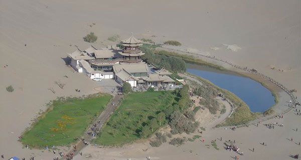 日益变小的月牙泉。举世闻名的甘肃敦煌月牙泉在上世纪70年代占地22亩,水最深处达9米。由于地表水减少、地下水下降,月牙泉如今水面仅有8亩,水深不足3米。尽管当地政府采取多种措施进行补救,效果不大。据有关专家介绍,如不采取更加有力措施进行抢救,30年后月牙泉将面临不复存在的危险。