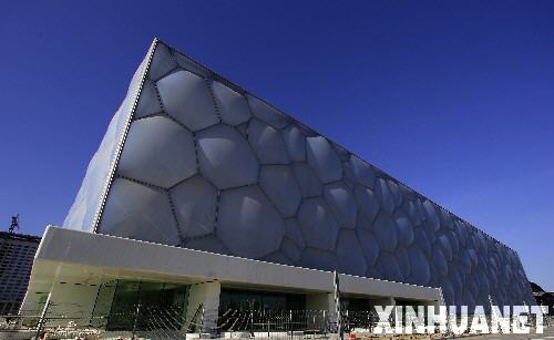 这是1月12日拍摄的国家游泳中心。 国家游泳中心因在设计上采用水分子的独特创意,被人们称为“水立方”,是北京奥运会的标志性建筑之一。 “水立方”占地6.5万平方米,可容纳1.7万名观众。北京奥运会期间,这里将举行游泳、跳水、花样游泳3个项目的比赛,共产生42枚金牌,是诞生奥运金牌仅次于国家体育场“鸟巢”的大户。奥运会后,这里将成为具有国际先进水平,集游泳、运动健身、休闲为一体的综合活动场所。 新华社记者才扬摄