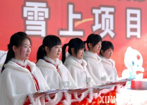 1月17日,亚布力雪上项目的颁奖礼仪小姐在进行排练。第十一届全国冬季运动会的颁奖礼仪小姐成为冰雪中一道靓丽的风景线。她们在赛前紧张排练,为明日开赛的雪上项目比赛做足准备。 新华社记者王长山摄