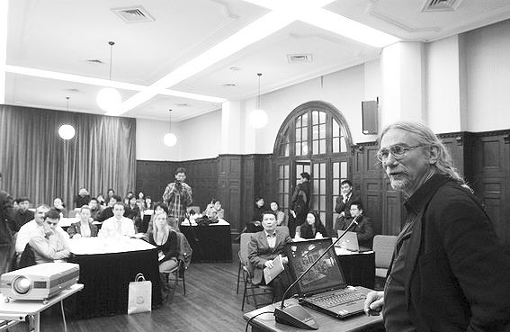 明格(右一)2007 年12 月率团参加中英青年科学家论坛。(图片来源:科技时报)