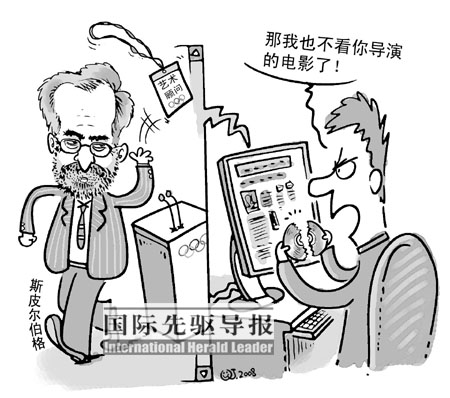 漫画:抵制斯皮尔伯格显得太小气。(来源:《国际先驱导报》邱炯)