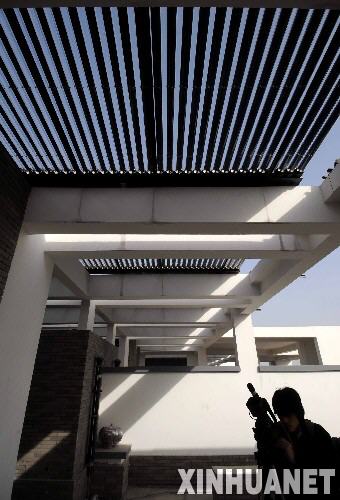 2月28日,一名记者在拍摄奥运村内建筑上的太阳能集热系统。2008年奥运会期间,供各国运动员、教练员等相关人员住宿的奥运村所用的可再生能源利用设备系统将从再生水热泵冷热源以及太阳能中获取789万千瓦时的能量用于空调制冷和生活热水,节约标煤3077吨,相当于减排二氧化碳8000吨。 新华社记者罗晓光摄