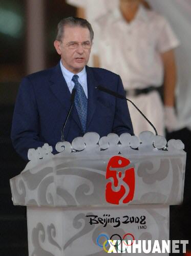图为2007年8月8日,国际奥委会主席罗格在活动中致辞。当晚,北京2008年奥运会倒计时一周年庆祝活动在天安门广场举行。 新华社记者罗晓光摄