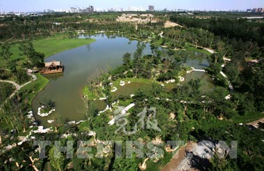 过去3年里,5000多名工人历尽艰辛,把曾经居住着几千名农民的村庄,改造成了密树成林的城中静地和户外休闲中心。规划人员说,这个公园能够容纳6万人。