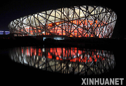 3月3日,国家体育场(“鸟巢”)灯火辉煌。当日,北京2008年奥运会主场馆――国家体育场全面试灯。 新华社记者罗晓光摄