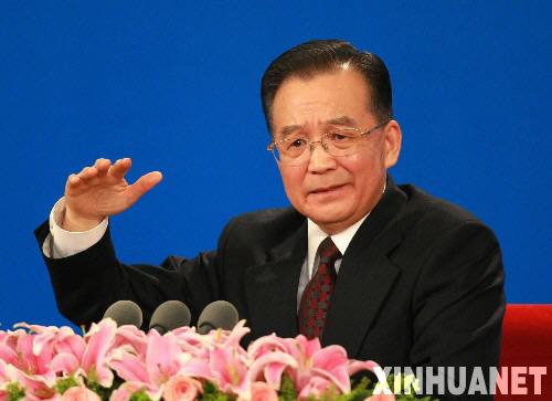 3月18日,国务院总理温家宝和副总理李克强、回良玉、张德江、王岐山在北京人民大会堂与中外记者见面,并回答记者提问。 新华社记者鞠鹏摄