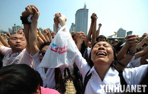 5月19日,数万群众汇集在成都天府广场,深切哀悼四川汶川大地震遇难同胞。 新华社记者 江宏景摄