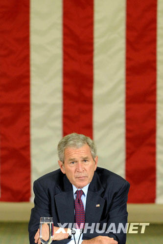 6月6日,美国总统布什在华盛顿美国红十字会总部出席关于评估中国四川汶川地震长期救灾需要的会议。 新华社记者 张岩摄