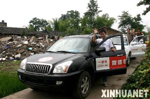6月6日,江淮抗震救灾前线指挥部派往四川地震灾区新闻中心的三位志愿者车手,驾驶江淮越野车送媒体记者前往地震重灾区安县乡村途中。 “伸出你的手,初次相识已是朋友”。不为名,不图利,只愿真情常驻人间;不怕苦,不畏难,只望阳光温暖心田。将我们最美好的祝愿和最真挚的感谢都谱写成歌,送给无私的志愿者。如果你也跃跃欲试,就看看这些抗震救灾中的志愿者的故事,他们是快乐的,这是他们无怨无悔的选择。 新华社记者 陈海宁 摄