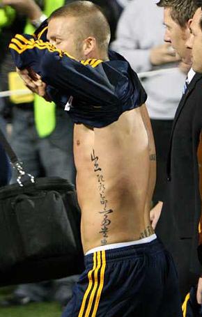 贝克汉姆腰部的最新汉字文身“生死有命,富贵在天”。