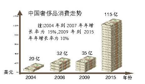 根据中国奢侈品协会2007年《环球奢侈品报告》预测,到2009年,60%的国际奢侈品品牌将在中国有自己的生产线,中国奢侈品的需求以每年15%的速度增长。