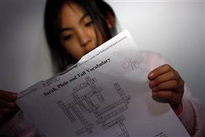她本该读四年级了,但因为语言障碍,只能现在低年级学习。安娜觉得中国的学校比美国学校要“辛苦五倍”。她有一包从美国带来的试卷,上面全是用绿色墨水打出的高分。“在美国我可以很容易得‘A’,在这里,我基本得的都是‘B’和‘C’。”安娜说。